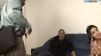 ブロンドのリボン付きが 大きいブラックチポを 口にはいれ まるまるお尻に食わせる
